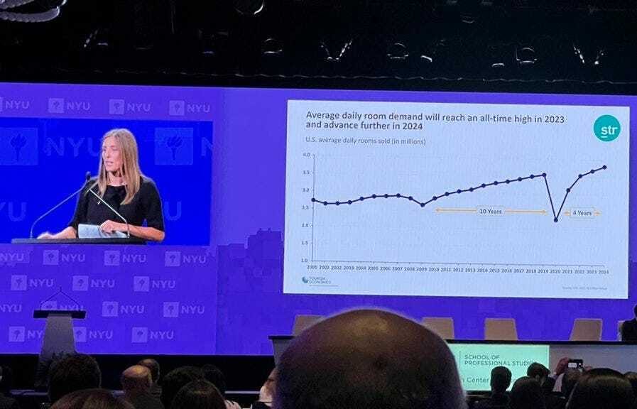 STR President Amanda Hite shared data pointing to continued growth in the years ahead. “We do not expect an upcoming recession to impact the hotel and travel industry the same way last recessions did.”